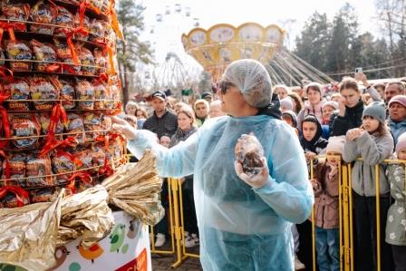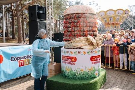 Второй гигантский кулич был роздан гостям праздника в Сормовском парке.